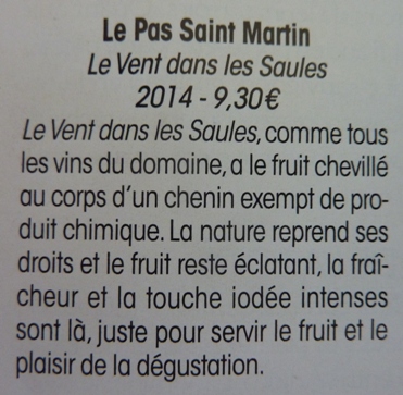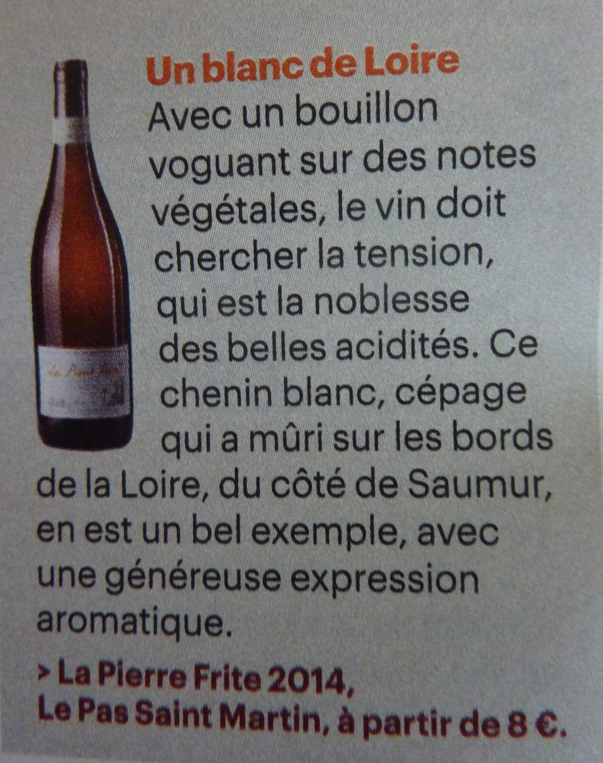 Le Saumur blanc « La Pierre frite » est présent dans un article du Parisien Magazine du 8 janvier 2016.